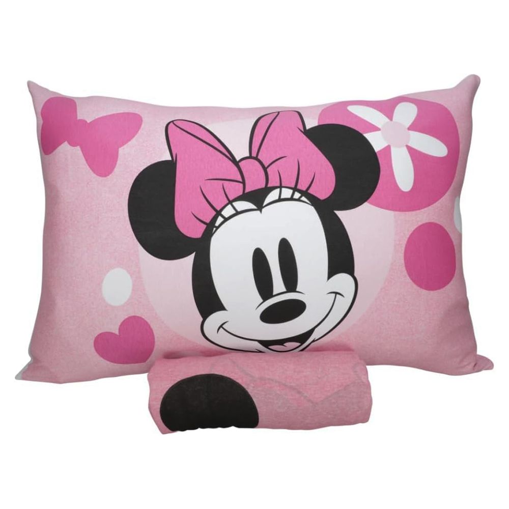 Jogo de Lençol KazzaVip Solteiro Malha Mista 70% Algodão e 30% Poliéster Joy Disney Big minnie 02 Peças Rosa
