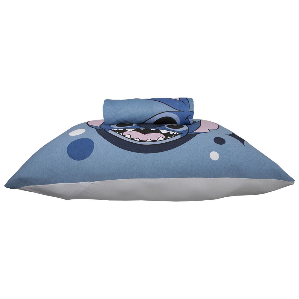 Jogo de Lençol KazzaVip Solteiro Malha Mista 70% Algodão e 30% Poliéster Joy Disney Big Stitch 02 Peças Azul