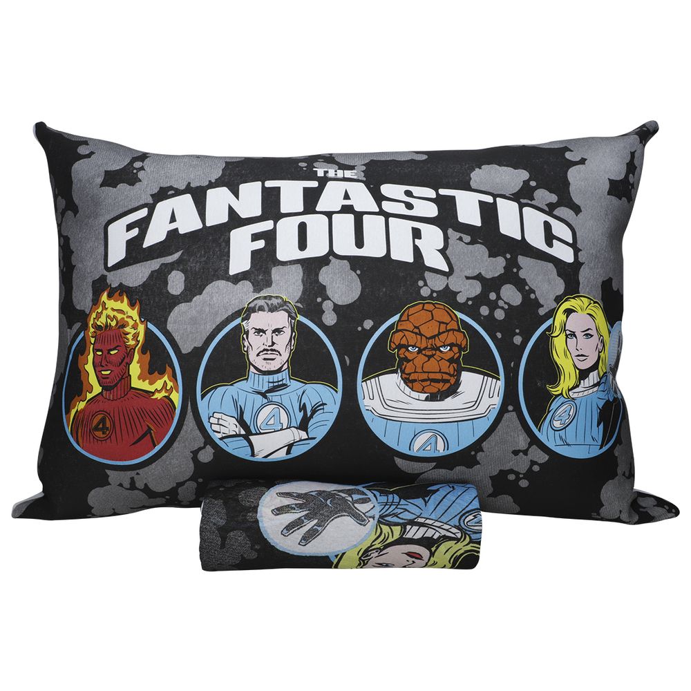 Jogo de Lençol KazzaVip Solteiro Malha Mista 70% Algodão e 30% Poliéster Joy Marvel Quarteto Fantastic 02 Peças Preto