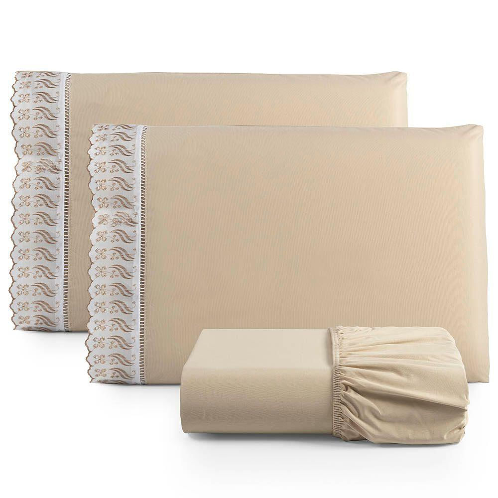 Jogo De Lençol King 3 Peças Basic Percal 180 Fios Lese Bordado Inglês - Cáqui
