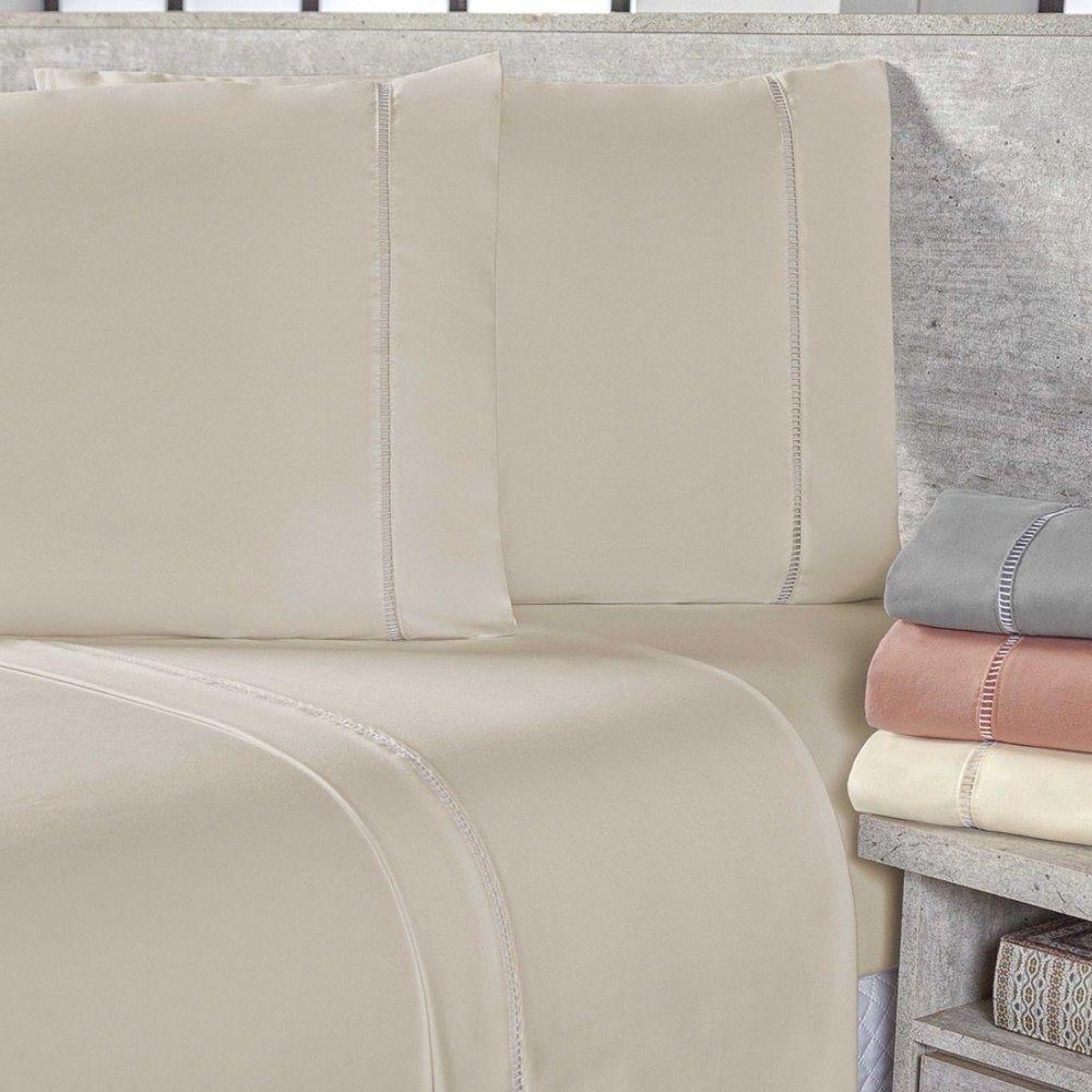 Jogo De Lençol King 3 Peças Percal 400 Fios Ponto Palito - Cáqui - 100% Poliéster