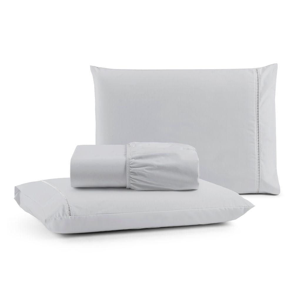 Jogo De Lençol King Premium Soft 600 Fios Micropercal Cinza Ponto Palito Toque Macio 3 Peças