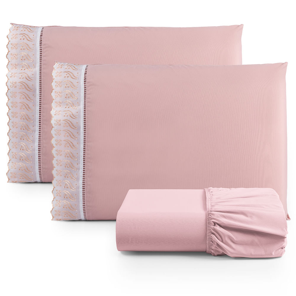 Jogo de Lençol Lese Percal 180 Fios Queen 3 Peças Barato - Rosê