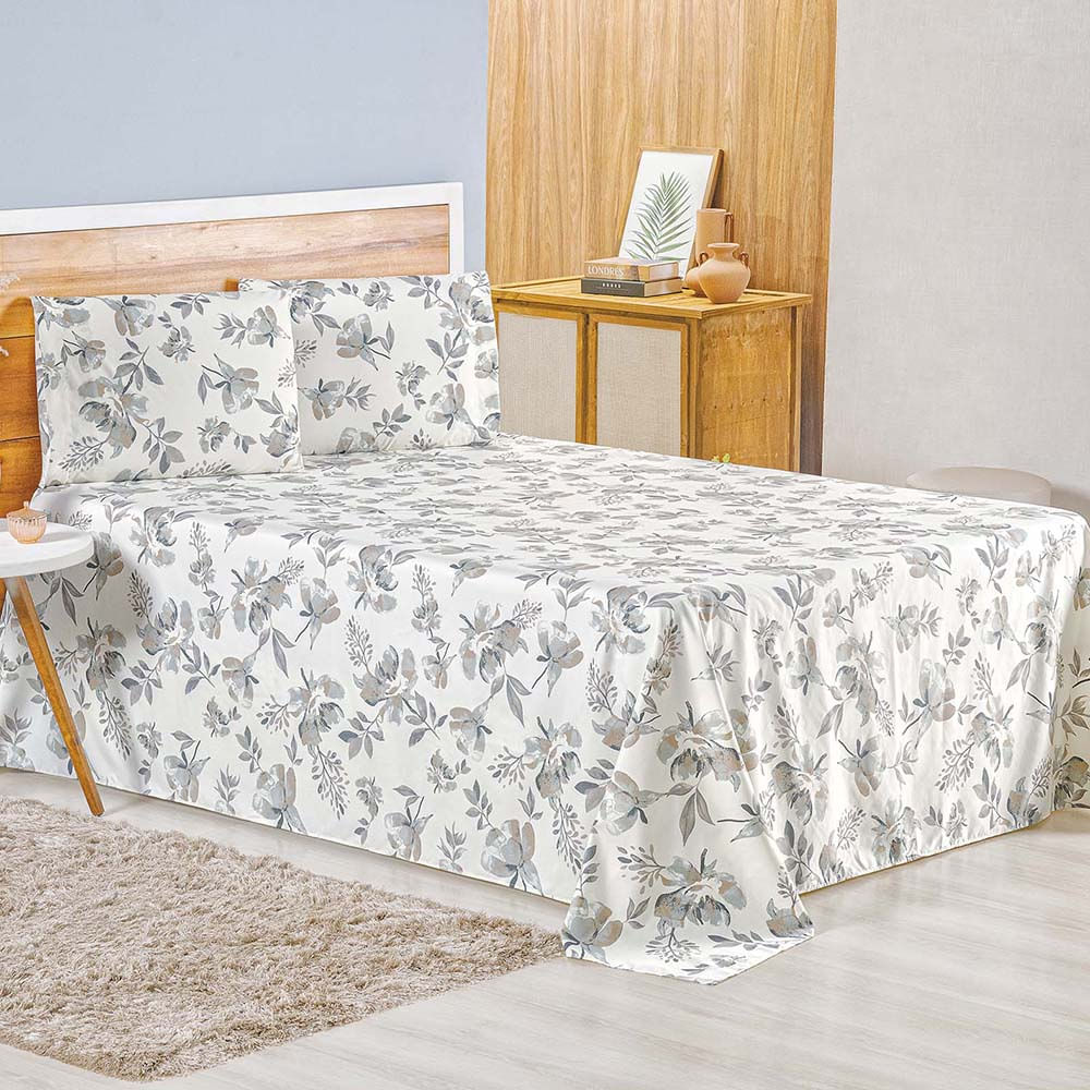 Jogo de Lençol Lidian Queen 3 Peças Hiperpercal Estampado 180 Fios - Capri Floral