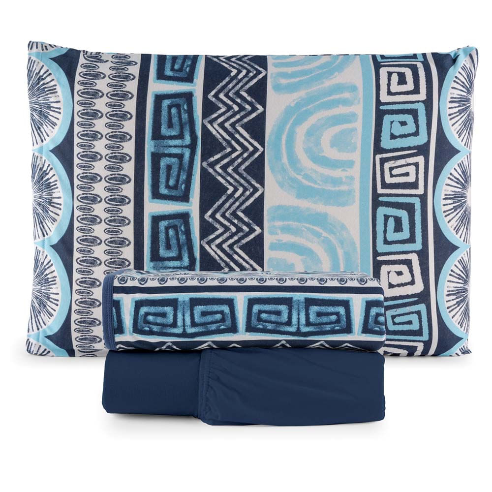 Jogo de Lençol Luar Solteiro 3 Peças Malha 100% Algodão Estampado - Azul Marinho Geométrico