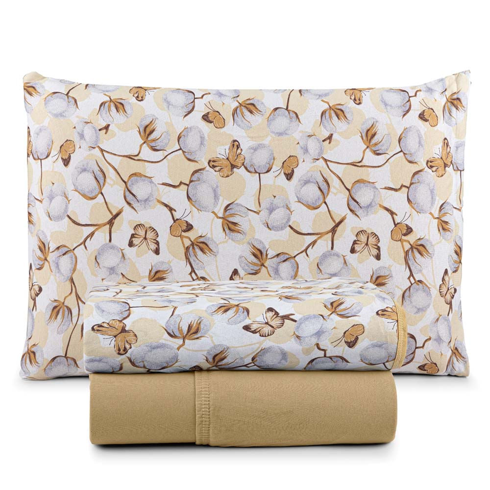 Jogo de Lençol Luar Solteiro 3 Peças Malha 100% Algodão Estampado - Mostarda Cotton