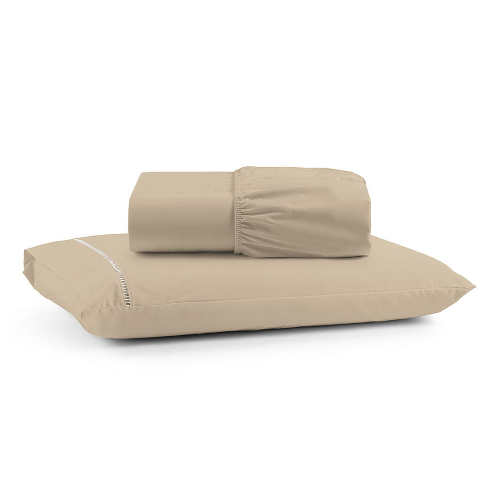 Jogo de Lençol Luiza Solteiro 2 Pçs Percal 100% Algodão 180 Fios Ponto Palito - Avelã