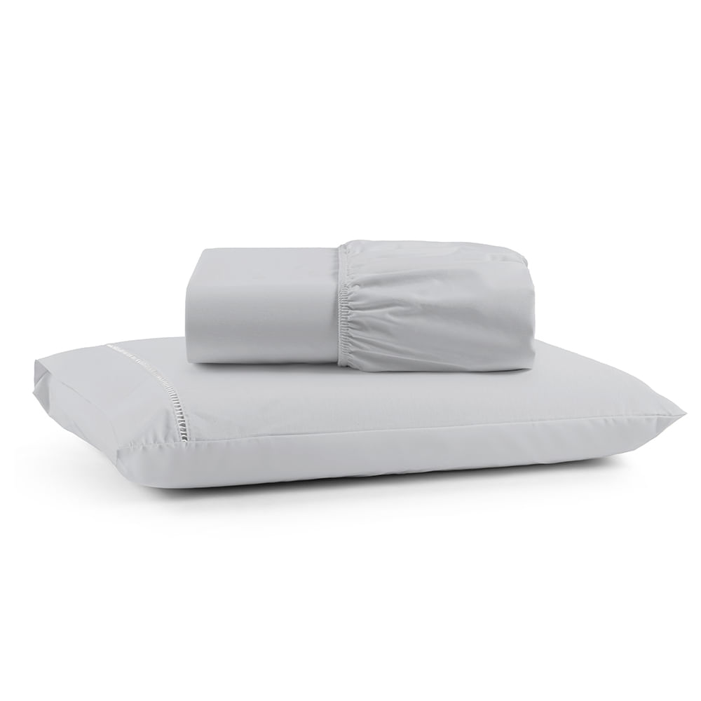 Jogo de Lençol Luiza Solteiro 2 Pçs Percal 100% Algodão 180 Fios Ponto Palito - Cinza