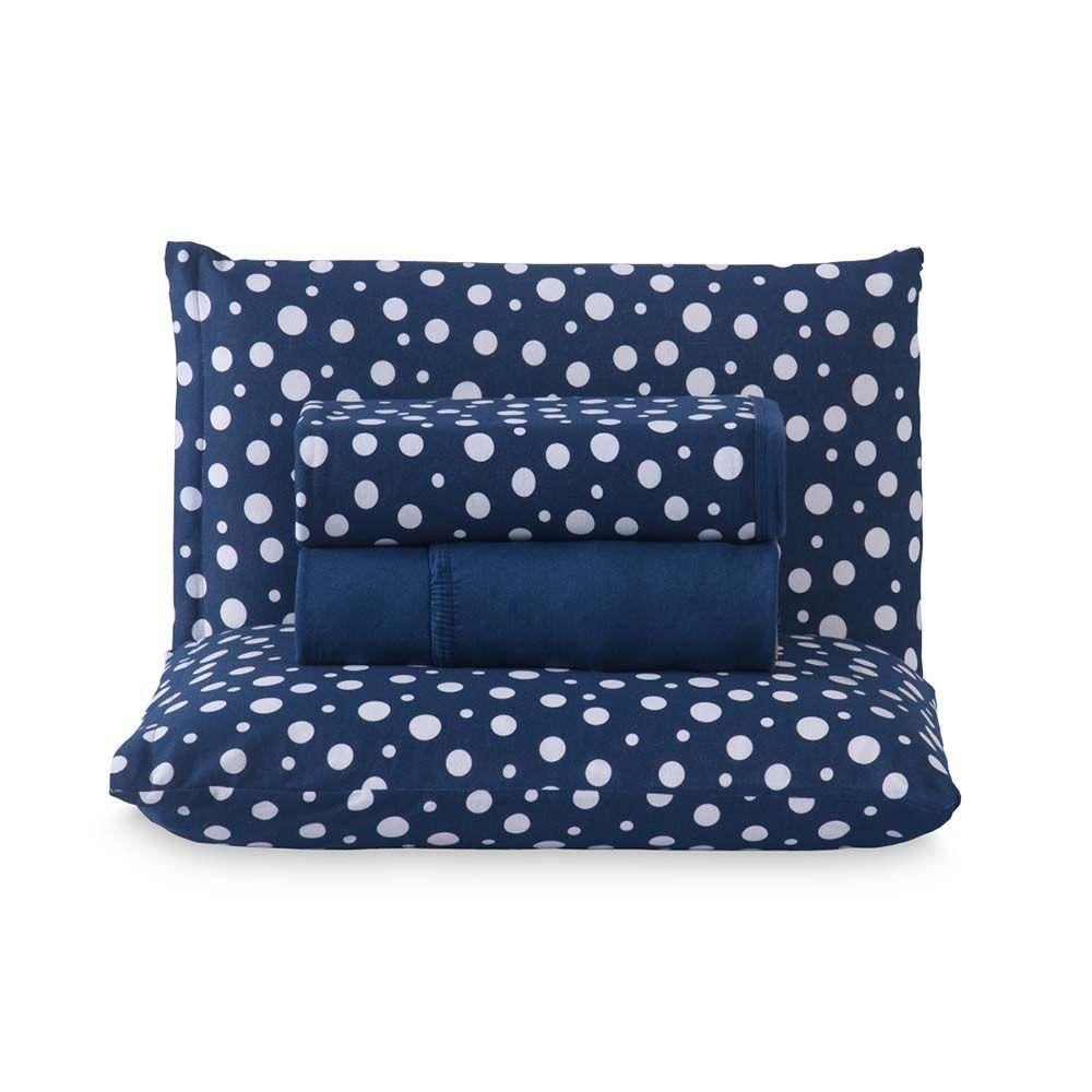 Jogo De Lençol Polly King 4 Peças Malha 100% Algodão Estampado Bolinhas - Azul Marinho