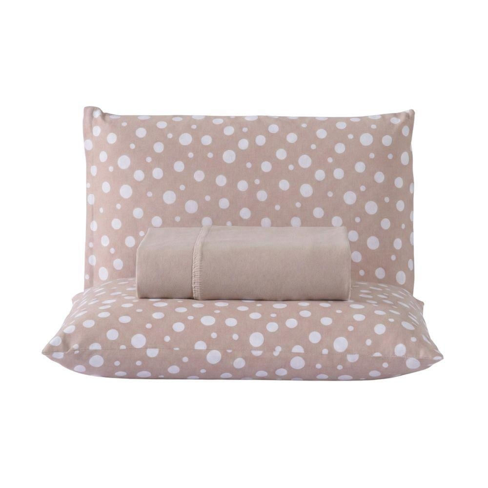 Jogo De Lençol Polly Solteiro 2 Peças Malha 100% Algodão Estampado Bolinhas - Bege