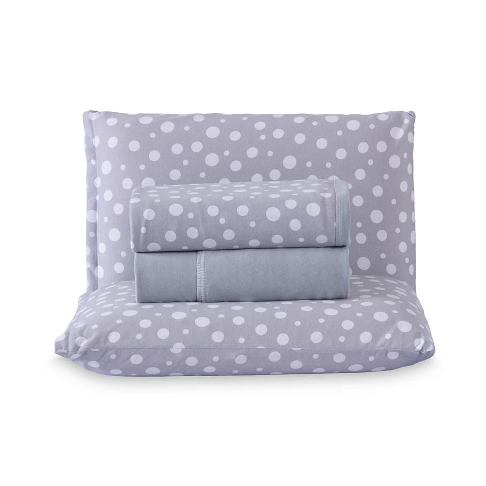 Jogo de Lençol Polly Solteiro 3 Peças Malha 100% Algodão Estampado Bolinhas - Cinza