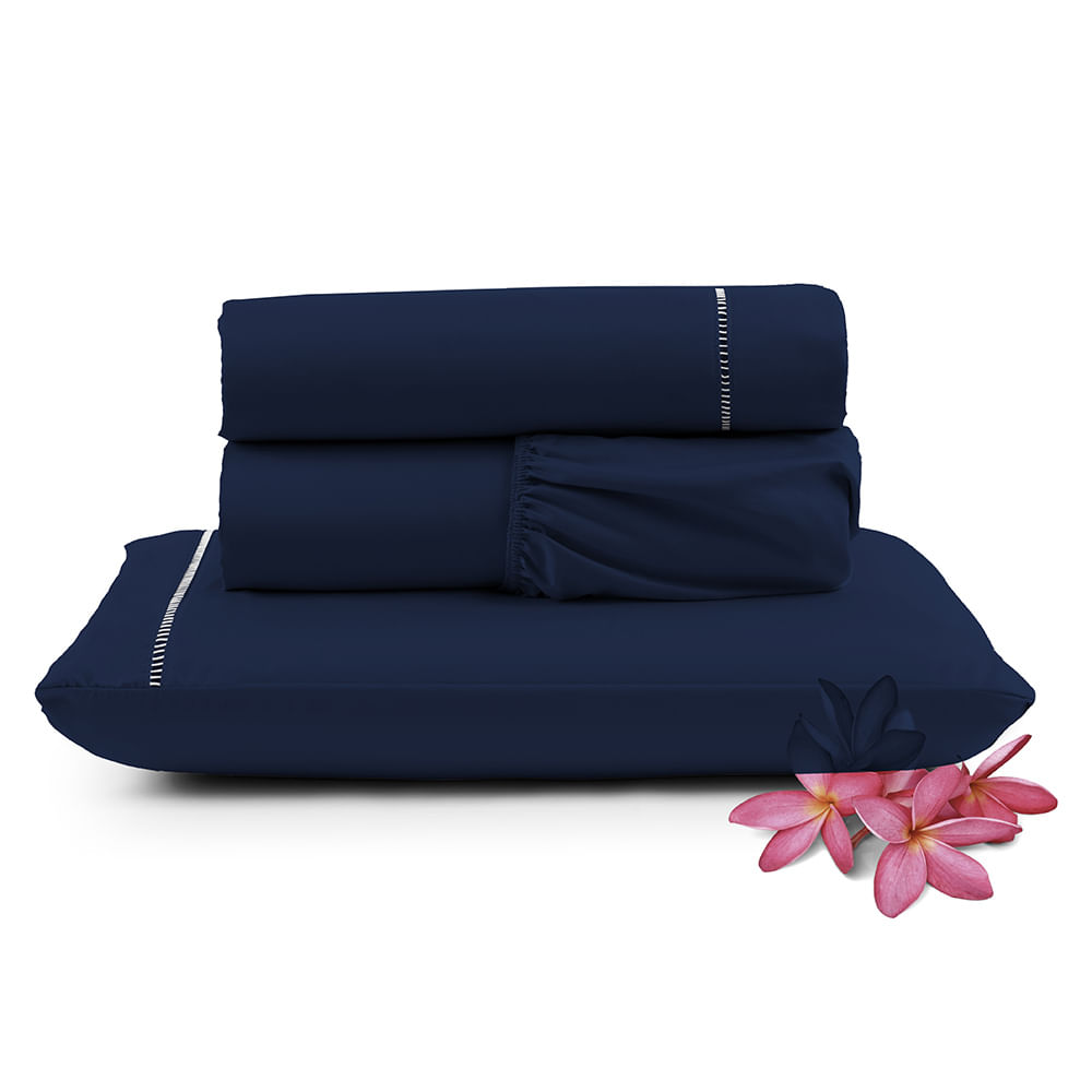 Jogo de Lençol Primor Solteiro 3 Peças Percal 400 Fios Ponto Palito - Azul Marinho