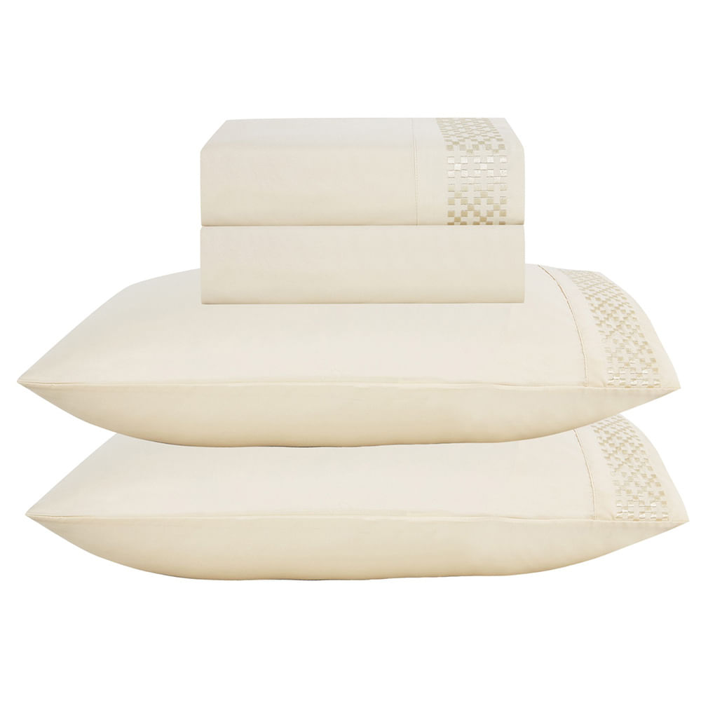 Jogo de Lençol Quadri Casal 4 Peças Micropercal 300 Fios Bordado - Palha - 100% Poliéster