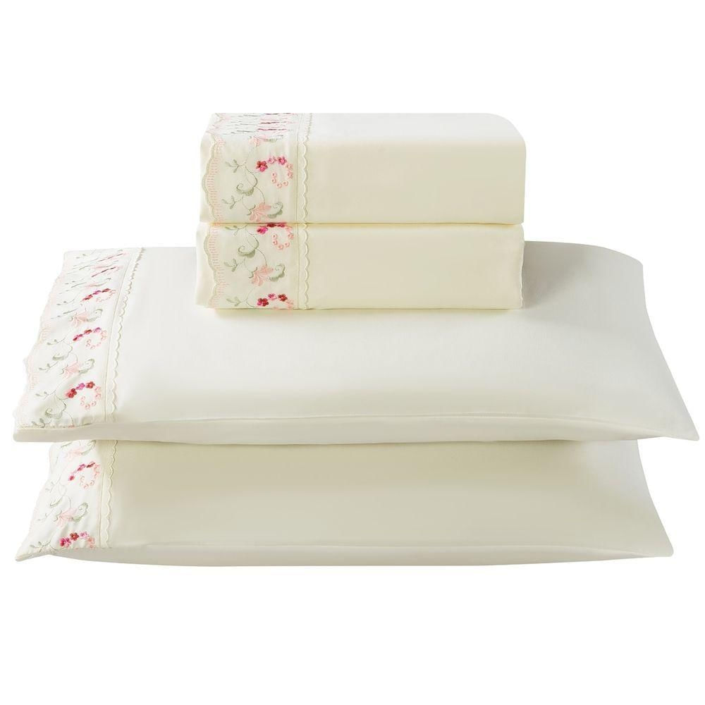 Jogo De Lençol Queen Essenza 300 Fios Micropercal Bordado 4 Peças Palha Ramo Vermelho