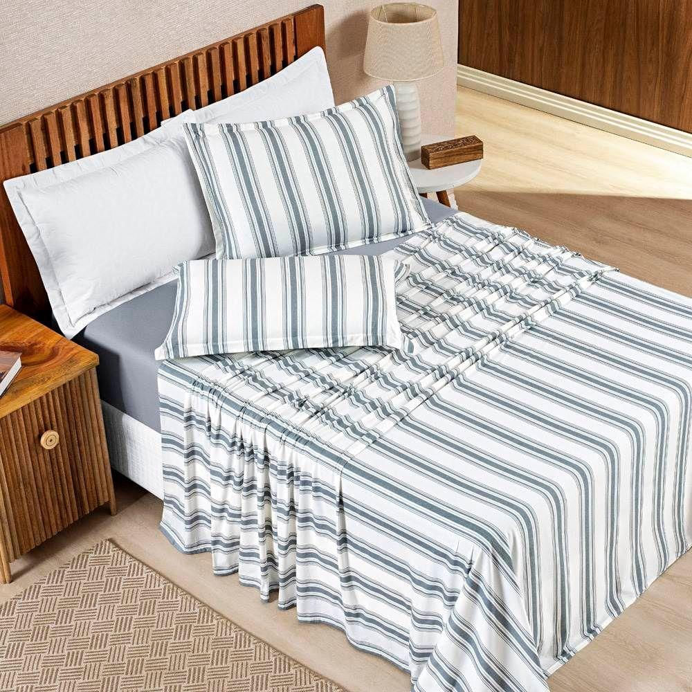 Jogo De Lençol Queen Marin Malha 100% Algodão Estampado 4 Peças Cor Cinza Listra
