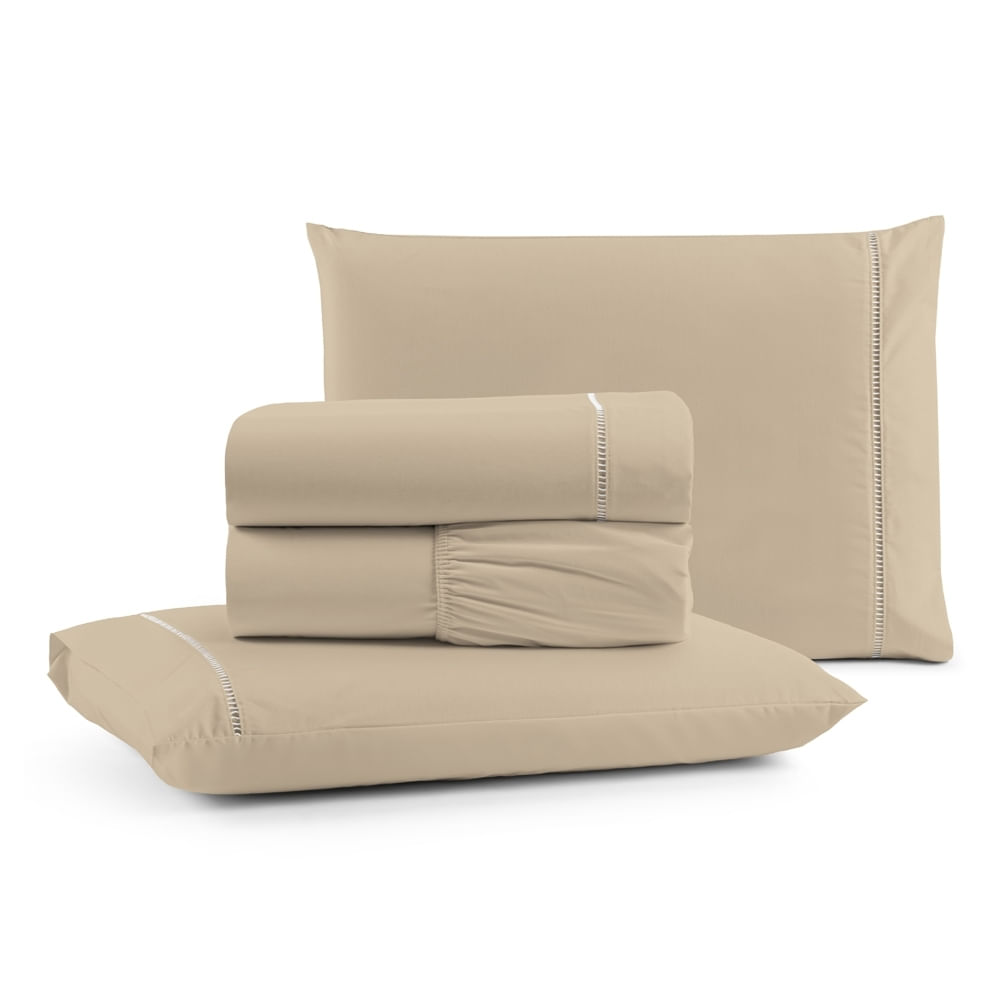 Jogo de Lençol Queen Premium Soft 600 Fios Micropercal Avelã Ponto Palito Toque Macio 4 Peças