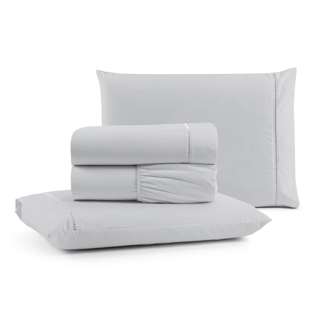 Jogo de Lençol Queen Premium Soft 600 Fios Micropercal Cinza Ponto Palito Toque Macio 4 Peças