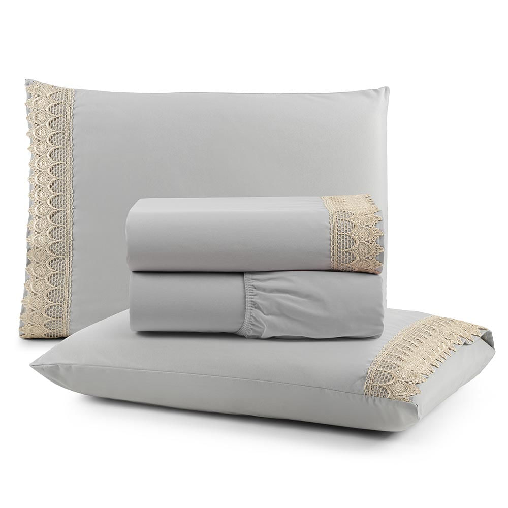 Jogo de Lençol Rubi Casal 4 Pçs 100% Algodão 200 Fios Ponto Palito Bordado - Cinza