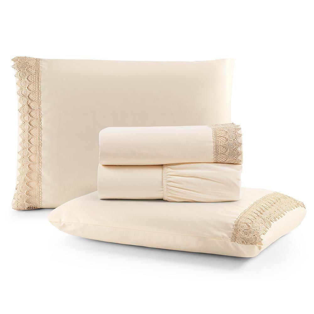 Jogo De Lençol Rubi Queen 4 Pçs 100% Algodão 200 Fios Ponto Palito Bordado - Palha
