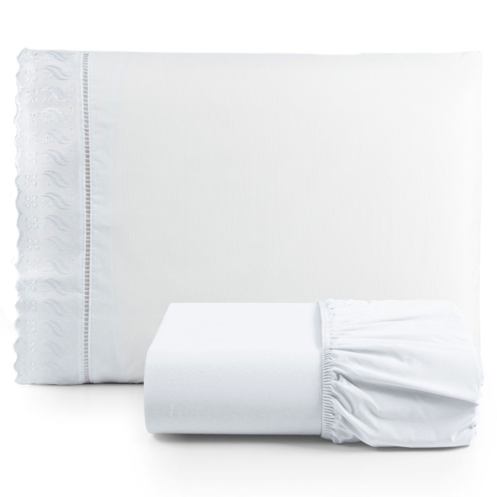 Jogo de Lençol Solteiro 2 Pçs Basic Percal 180 Fios Lese Bordado Inglês - Branco