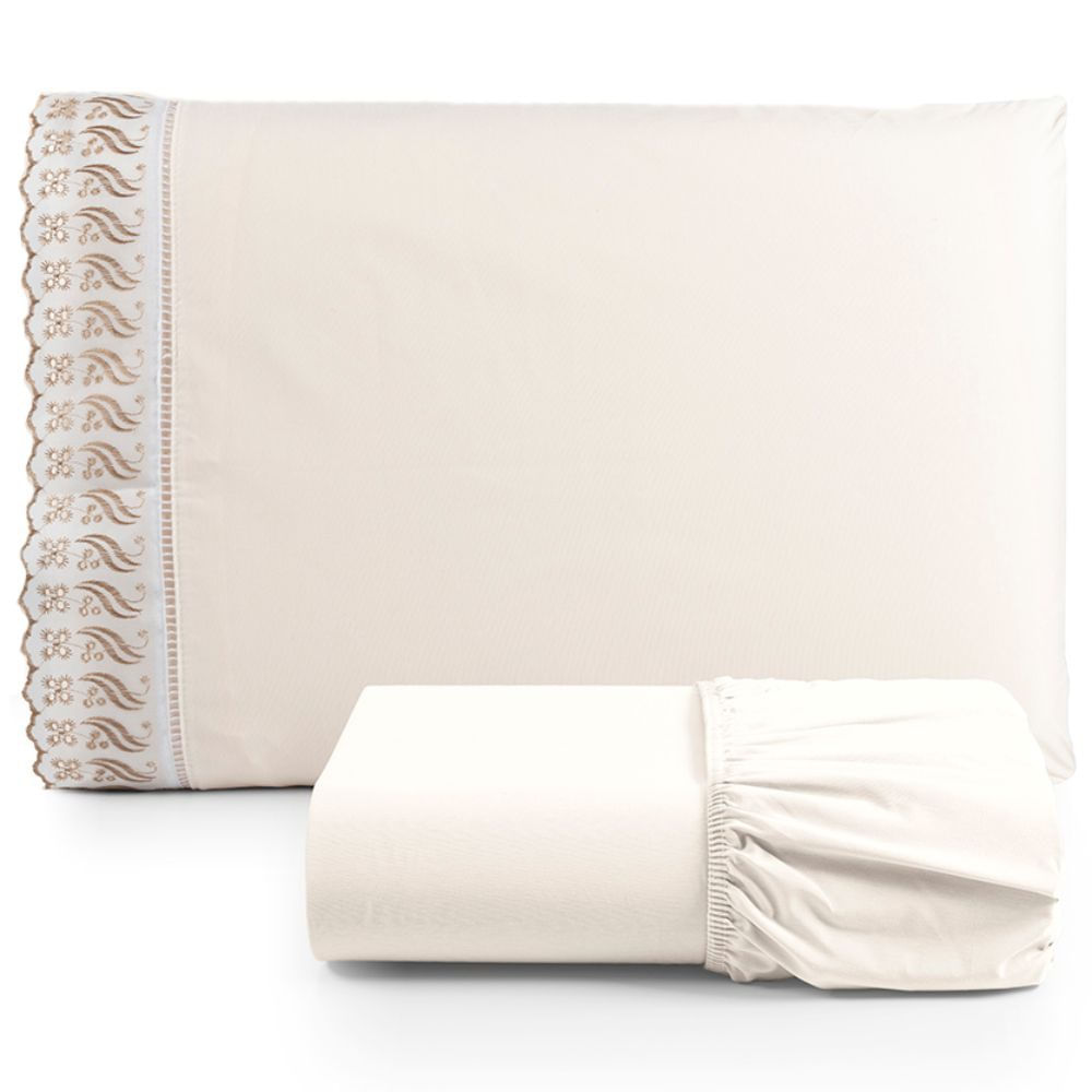 Jogo de Lençol Solteiro 2 Pçs Basic Percal 180 Fios Lese Bordado Inglês - Palha