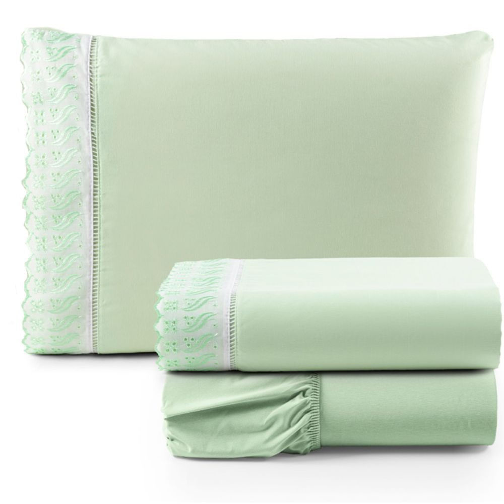 Jogo de Lençol Solteiro 3 Peças Basic Percal 180 Fios Lese Bordado Inglês - Verde