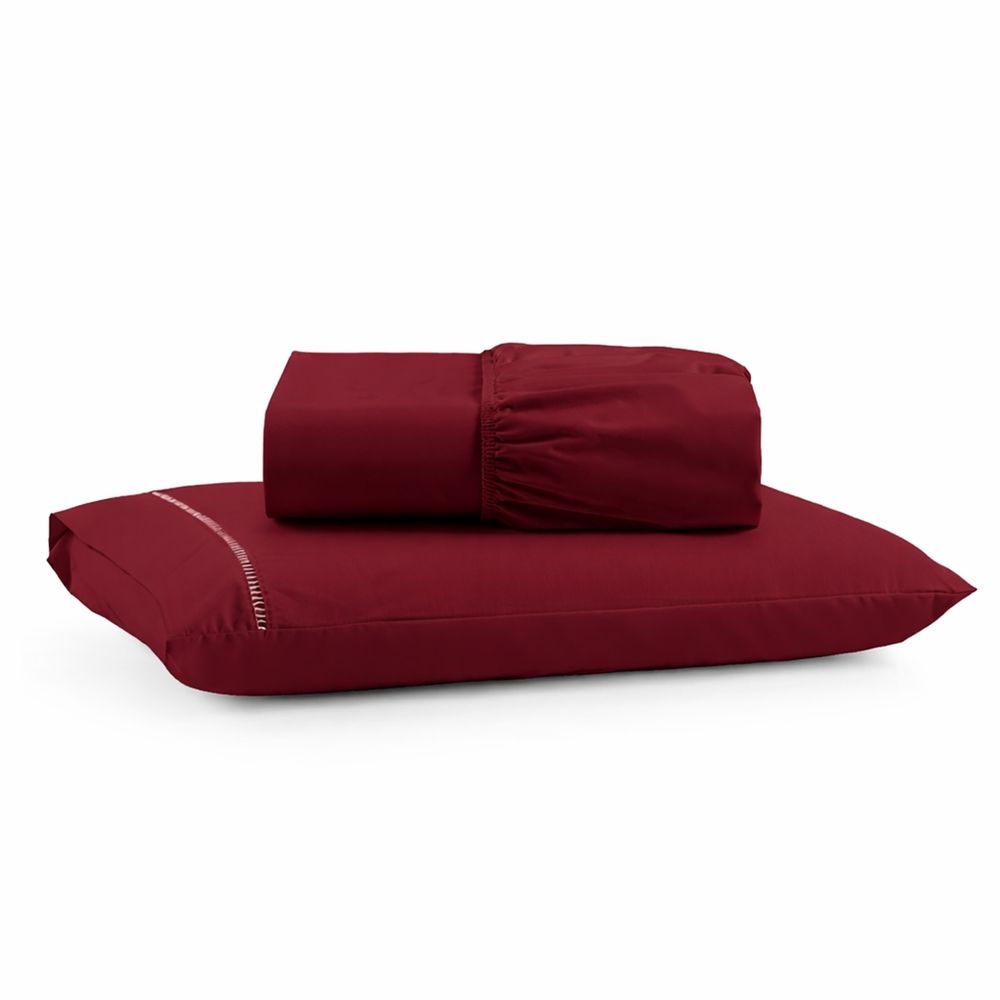 Jogo de Lençol Solteiro Premium Soft 600 Fios Micropercal Bordô Ponto Palito Toque Macio 2 Peças