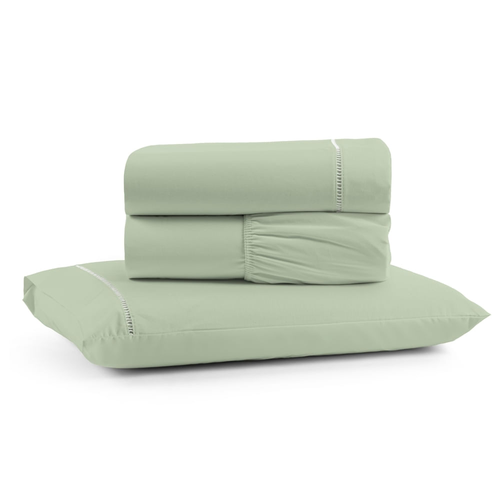 Jogo de Lençol Solteiro Premium Soft 600 Fios Micropercal Verde Ponto Palito Toque Macio 3 Peças