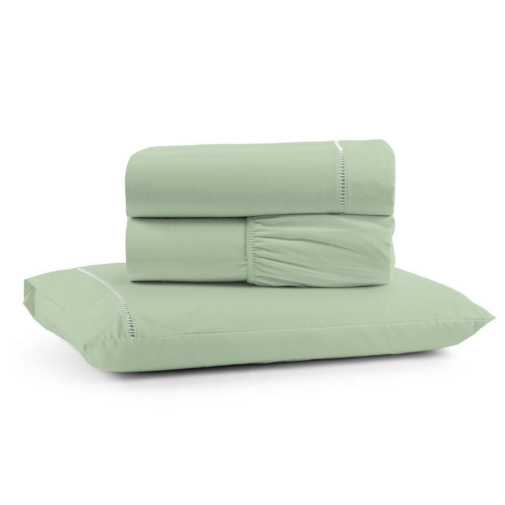 Jogo De Lençol Solteiro Premium Soft 600 Fios Micropercal Verde Ponto Palito Toque Macio 3 Peças