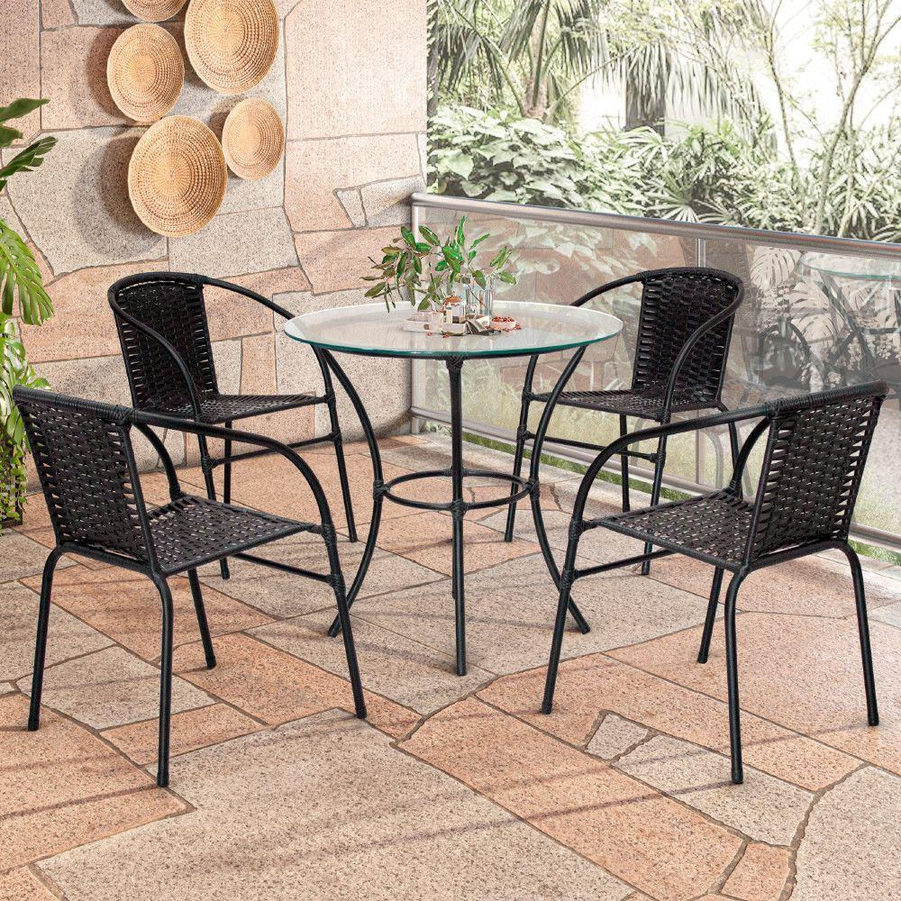 Jogo De Mesa 4 Cadeiras Happy Hour Para área Externa Em Aço E Fibra Sintética Preto