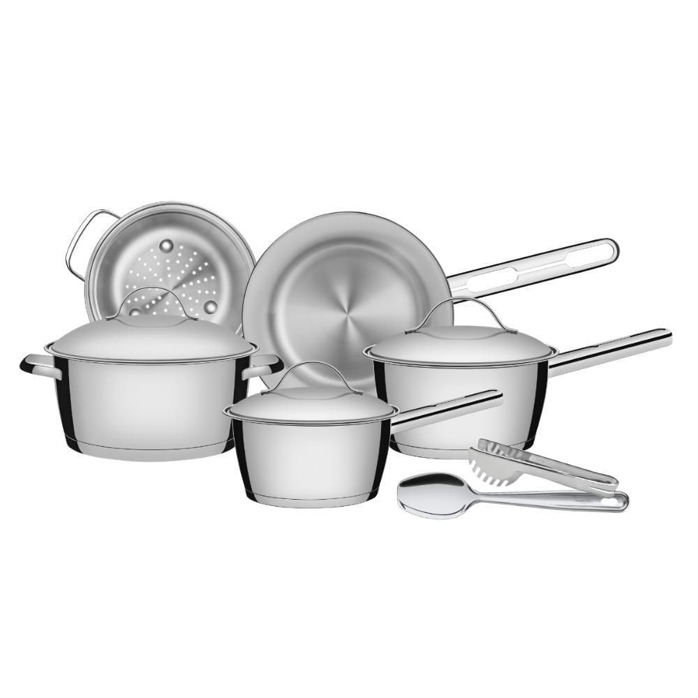 Jogo De Panelas Aço Inox 5 Peças Allegra Colher E Pegador Tramontina