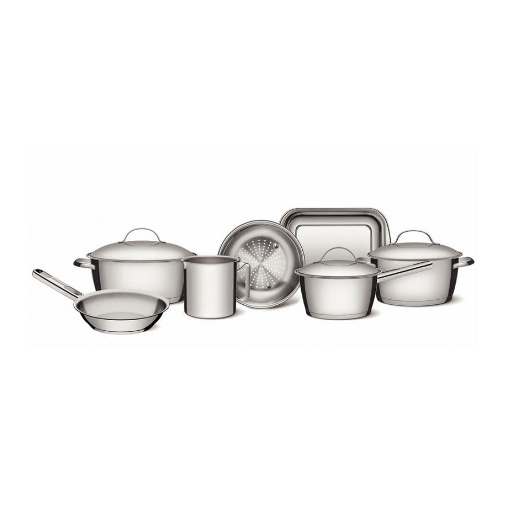 Jogo de Panelas Aço Inox 7 Peças Allegra TramontinaA Tramontina usa a mais alta tecnologia para produzir panelas de aço inox com fundo triplo. São duas camadas de aço inox envolvendo uma camada de alumínio. Dessa forma, o calor da chama se distribui por igual, deixando os alimentos muito mais macios e saborosos. Além disso a comida cozinha muito mais rápido, o que acaba gerando economia.Características: