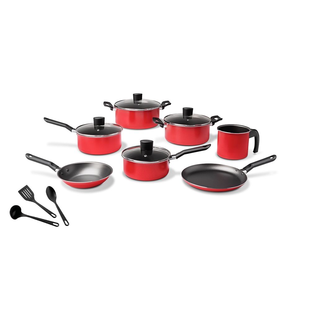 Jogo de Panelas Salt Vermelho Antiaderente Pro Flon 10 Peças - Brinox 7001/434 Transforme sua rotina na cozinha com este incrível Conjunto de Panelas Salt com 10 peças! Além de moderno e elegante com sua cor vermelha vibrante, ele oferece alta qualidade, durabilidade e versatilidade para quem ama cozinhar – seja no dia a dia ou em momentos especiais com a família. Itens inclusos no conjunto: 2 Caçarolas com tampas de vidro temperado, 2 Panelas com tampas de vidro temperado, 2 Frigideiras, 1 Fervedor 12cm e 3 Utensílios de nylon (ideal para não riscar suas panelas). Cada peça possui revestimento antiaderente, que garante preparo saudável com menos óleo e facilita a limpeza. As tampas com saída de vapor ajudam a manter o controle do cozimento, e os cabos são ergonômicos e resistentes ao calor. Revestimento interno e externo antiaderente de alta qualidade, design moderno que valoriza qualquer cozinha. O jogo é compatível com fogões a gás, elétrico. Ideal para quem busca custo-benefício com estilo e desempenho Garanta já o seu e leve mais praticidade, beleza e qualidade para a sua cozinha! Características do Produto: Fabricante: Brinox Material da Estrutura: Alumínio Material da Tampa: Vidro Temperado Material do Cabo: Baquelite Material dos Utensílios: Nylon Possui Revestimento Antiaderente: Sim (Pro-Flon) Quantidade de Peças: 10 Dimensões dos Itens: Carola 22cm 3L || Caçarola 20cm 2,5L || Panela 18cm 1,75L || Panela 16cm 1,2L, || Fervedor 12cm 1,2L, || Frigideira 20cm 800ml, || Frigideira 16cm 400ml, || colher de arroz 29,5x6,5x3,6 cm, || Concha de feijão 28,5x8,7x6,8 cm || Espátula 30,5x8,5x4 cm GARANTIA de Fabricação: 90 dias (Defeitos de fabricação). Imagens meramente ilustrativas.