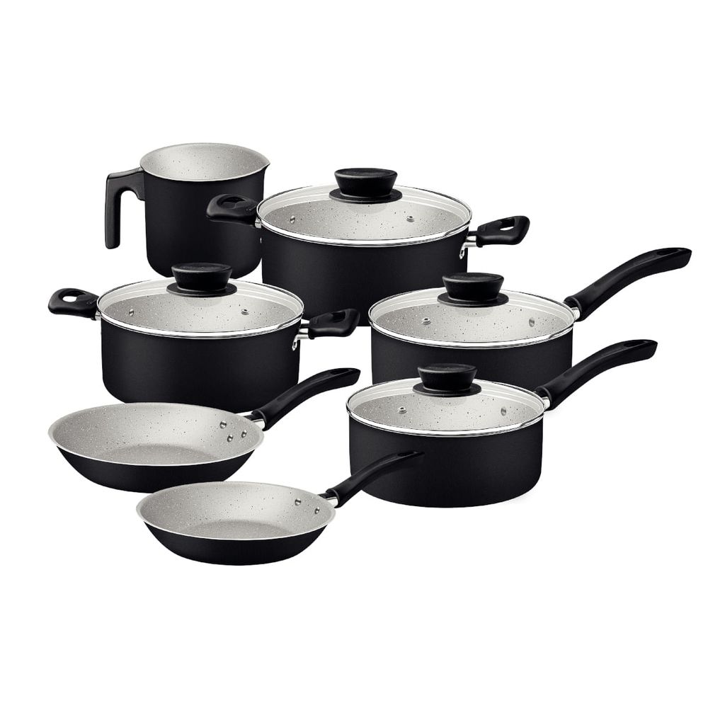 Jogo de Panelas Tramontina Linz 7 Peças em Alumínio Antiaderente Starflon Max Preto