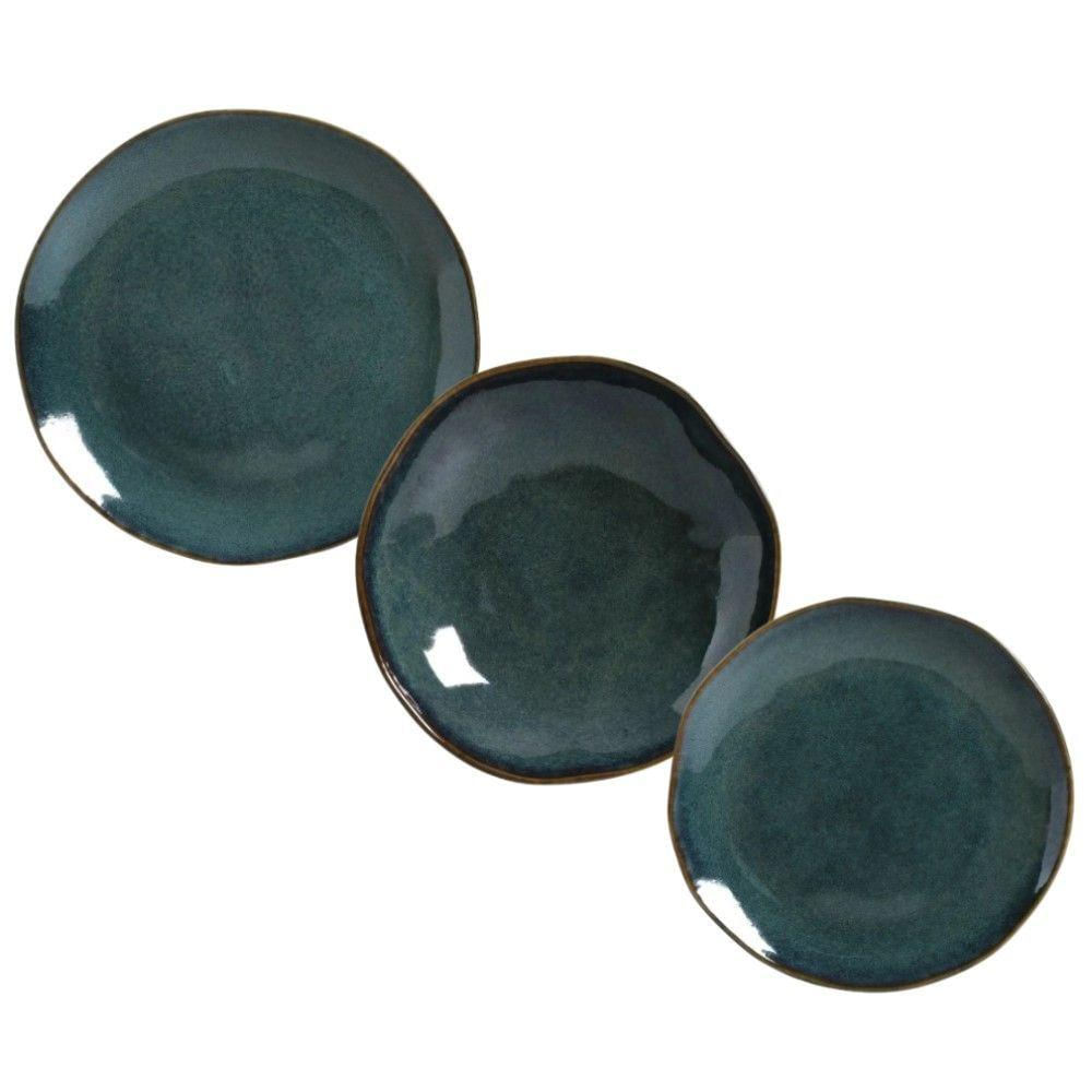 Jogo de Pratos 18 Peças Orgânico Oceano Porto BrasilO Stoneware, assim como a faiança feldspática e porcelana, é um material cerâmico. O Stoneware Porto Brasil é um material inovador e sustentável, onde a combinação das melhores matérias primas naturais, unido a um processo único de queima e acabamento manual, entregam um produto com características superiores em termos de qualidade e resistência, estando em conformidade com as principais normas mundiais. Além disso, conseguimos proporcionar peças exclusivas, onde alterações de formas, relevos e variações de cores são efeitos característicos dos produtos, evidenciando assim sua originalidade e autenticidade.Jogo de Pratos 18 Peças Orgânico Oceano Porto Brasil - Incluso6 Pratos Rasos - 26,5 cm6 Pratos Fundos - 21,5 cm6 Pratos Sobremesa - 19,5 cmJogo de Pratos 18 Peças Orgânico Oceano Porto Brasil - InformaçõesUso: Resistente a micro-ondas, resistente a lava-louçasMaterial: Cerâmica stonewareFormato: RedondoDecoração: Orgânico OceanoCor: Verde petróleo e marrom