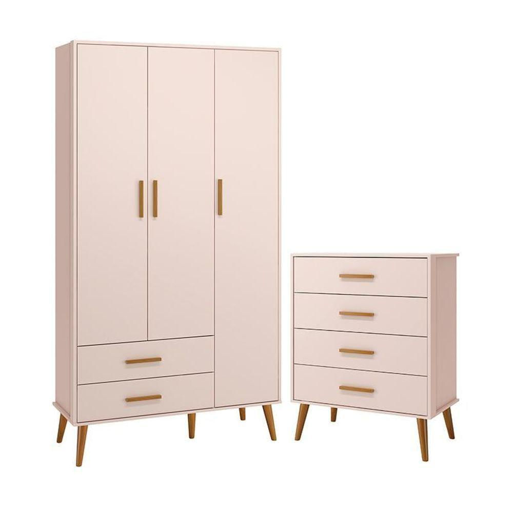 Jogo De Quarto Infantil Isis Guarda Roupa 3 Portas E Cômoda 4 Gavetas Rosa - Reller Móveis Rosa