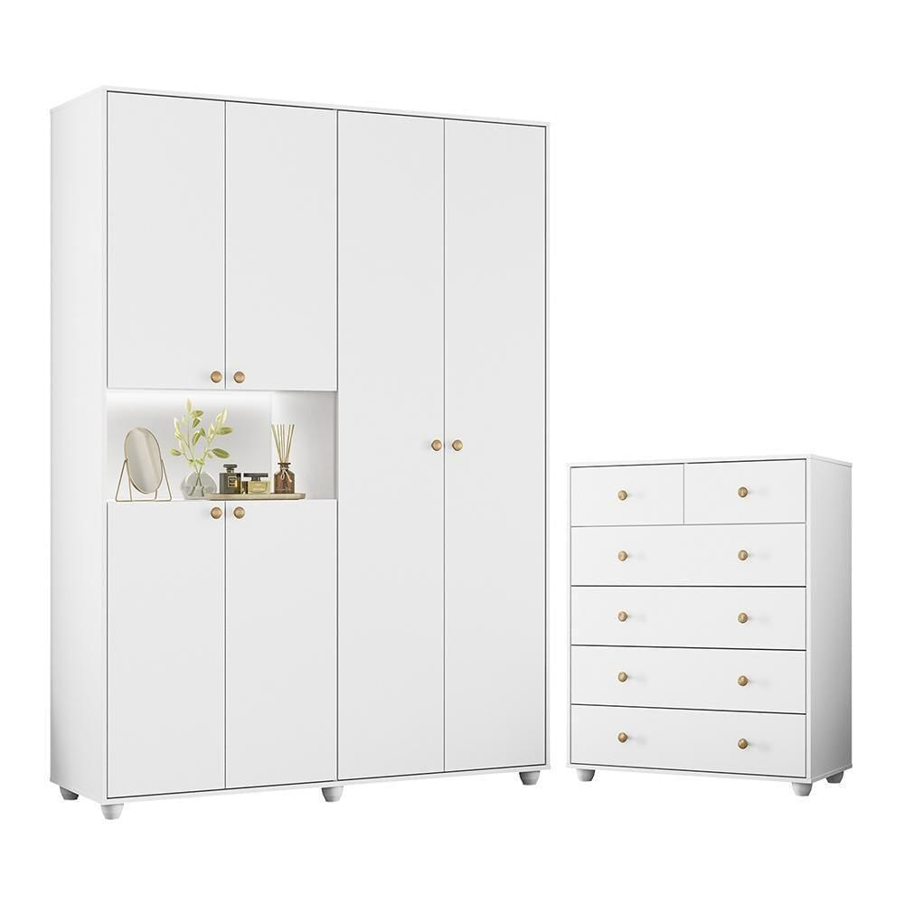 Jogo De Quarto Vittoria Com Guarda Roupa E Cômoda Branco - Móveis Albatroz Branco