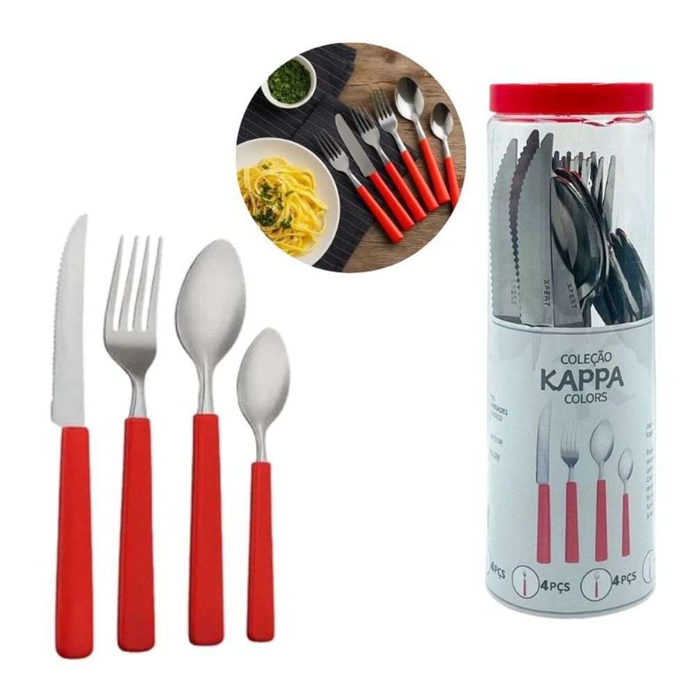 Jogo de Talheres Cabo Vermelho 16 Peças Garfo Faca Colher