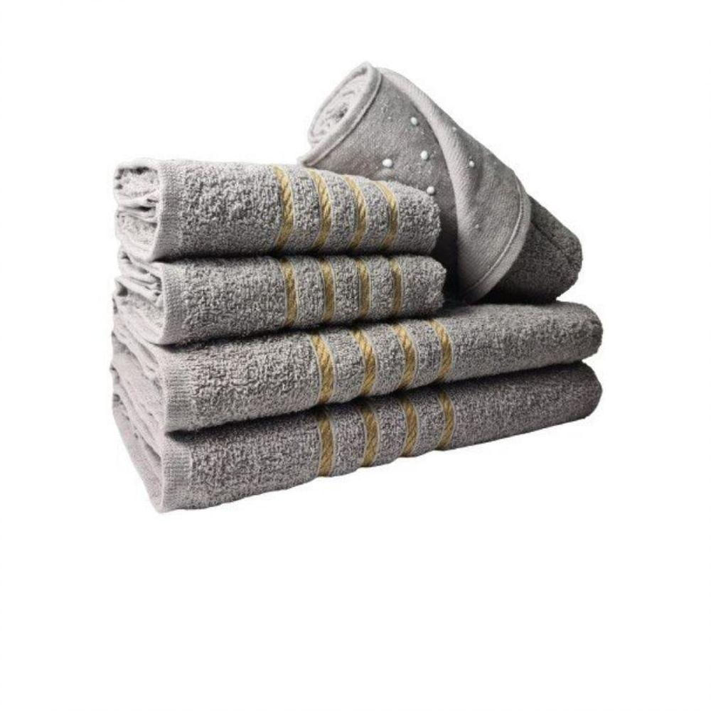 Jogo De Toalha 2 Banho 2 Rosto 1 Piso - 5pçs Coleção Dubai 100% Algodão Cinza