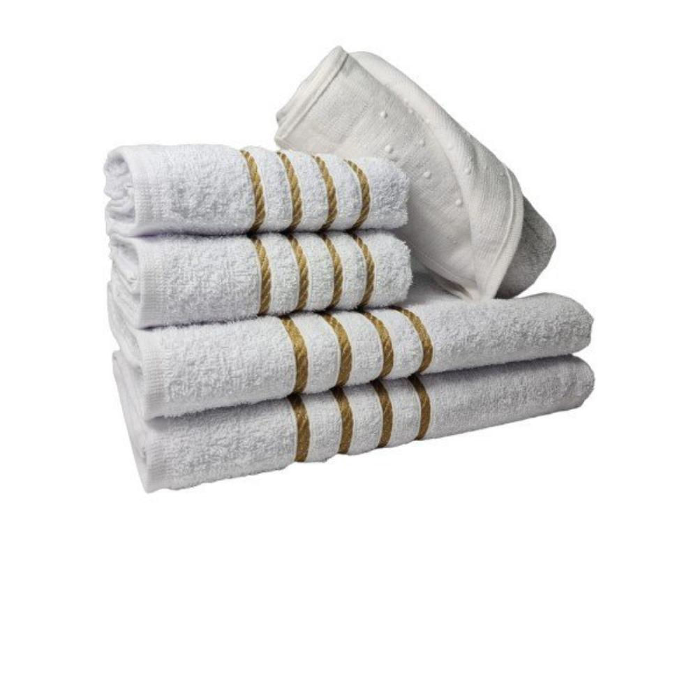 Jogo de Toalha 2 Banho 2 Rosto 1 Piso - 5pçs Coleção Montreal 100% Algodão - Branco