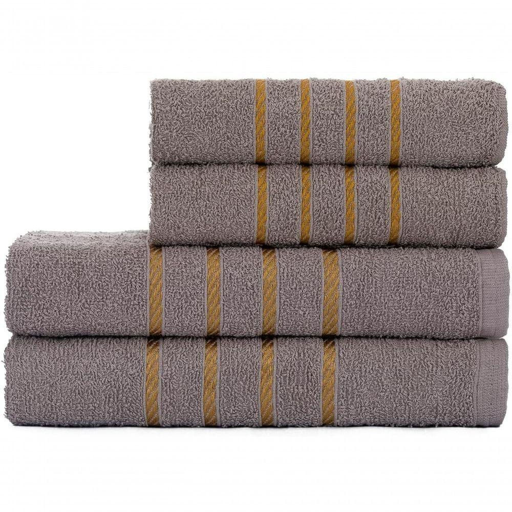 Jogo De Toalha Montreal 2 Banho + 2 Rosto Dourado 100% Algodão Alta Absorção Cinza