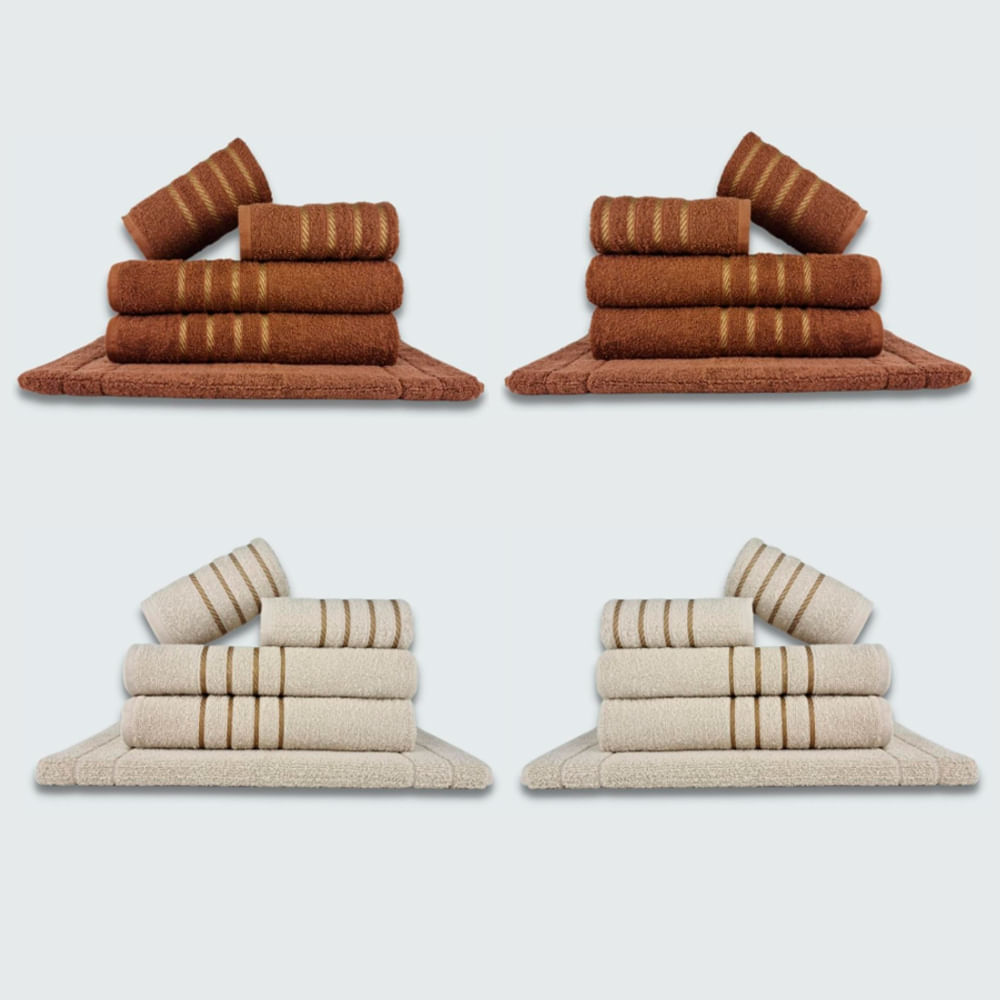 Jogo de Toalha 20 peças Coleção Montreal 100% Algodão;- Composição - 8 Toalhas de Banho + 8 Toalhas de Rosto + 4 Tapetes Atiderrapante