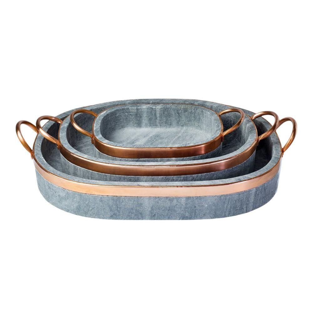 Jogo de Travessaa ovais / Assadeiras produzidos em Pedra Sabão com acabamento e alças em áveis e charmosas as travessas de pedra sabão combinam com todos os ambientes e cardápios, você pode utiliza-las tanto para o preparo quanto para servir variedades de comidas e estilos de montagem de mesa ou jogo contém:01 - Assadeira Grande:- Comprimento (INTERNO): 38 cm.- Largura (INTERNO): 21 cm.- Altura: 5,5 cm.- Peso: 4,100 Kg.- Capacidade: 3000 ml01 - Assadeira Média:- Comprimento (INTERNO): 30 cm.- Largura (INTERNO): 18 cm.- Altura: 5,5 cm.- Peso: 3 Kg.- Capacidade: 1500 ml01 - Assadeira Pequena:- Comprimento (INTERNO): 17 cm.- Largura (INTERNO): 11 cm.- Altura: 5,5 cm.- Peso: 1,4 Kg.- Capacidade: 650 ml** Características Técnicas (valores aproximados)** Por se tratar de um produto natural e artesanal pode haver pequenas variações de coloração, traços, medidas ou capacidade em relação a descrição e fotos.** Os produtos de Pedra Sabão devem passar por um processo de cura, que sela e aumenta a resistência da pedra. O processo é simples e leva apenas alguns minutos. Enviaremos instruções de como curar seu produto. Com a cura a pedra escurece, ficando num tom próximo ao uso de pedra sabão tem sido cada vez mais comum em cozinhas de todo o . Inclusive, é uma febre entre chefes de cozinha e influencers da área de gastronomia. Além de dar mais sabor aos alimentos, proporciona muitos benefícios para a nossa saúde. Estudos recentes mostraram que, durante o processo de cozimento em utensílios de pedra sabão, há transmissão de nutrientes benéficos como o ferro, , cálcio e magnésio da panela para os ingestão de ferro contribui para aumento da nossa energia e disposição, além de prevenir o envelhecimento precoce, melhorar nossa concentração, reduzir o risco de doenças e fortalecer cabelo e á o auxilia no fortalecimento do nosso sistema imunológico e ajuda a acelerar o processo de cicatrização e afastar o surgimento de infecções e outras doenças, como o e alguns tipos de câ cálcio, por sua vez, é fundamental para a mineralização dos nossos ossos e dentes. Também é o principal agente responsável pela divisão , pela contração dos músculos, secreção de hormônios e coagulação sanguí magnésio é um mineral que desempenha um papel em mais de 300 reações enzimáticas em nosso organismo. Dentre as suas funções estão o auxílio na função muscular e nervosa, além de contribuir para regular nossa pressão sanguínea e fortalecer nosso sistema imunológico.