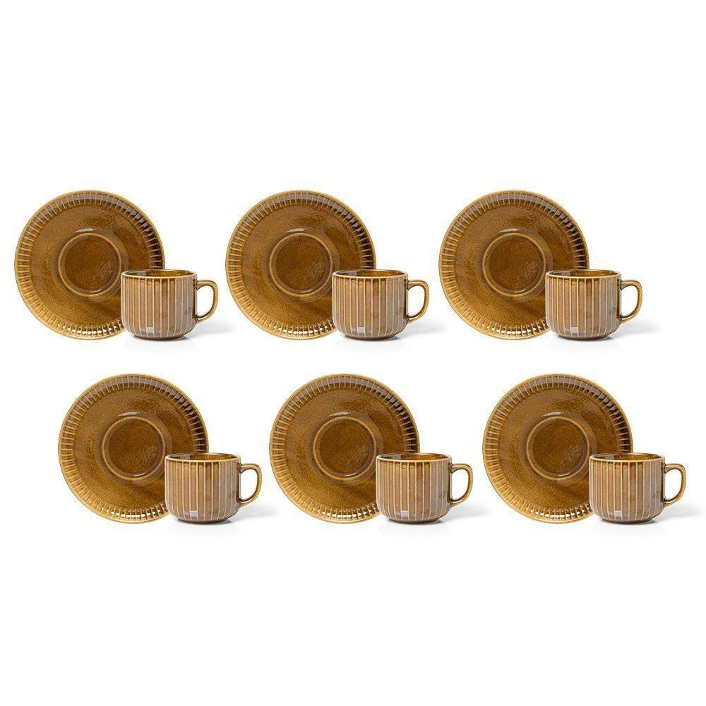Jogo De Xícaras Copa E Cia 12 Peças Ravonna Em Cerâmica Brun Terra