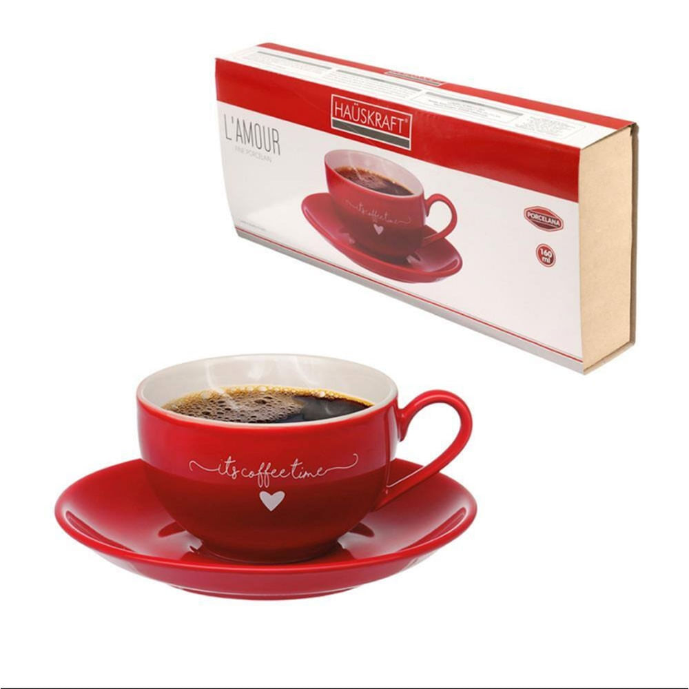 Estilo e Elegância para o Seu Cha O Jogo de Xicaras L`amour para Cha da Hauskraft é perfeito para transformar seus momentos de pausa em experiências ainda mais especiais. Composto por 6 xicaras de 160ml e 6 pires, o conjunto é feito em porcelana de alta qualidade, com um design delicado e acabamento em vermelho vibrante que transmite charme e sofisticação à sua mesa.