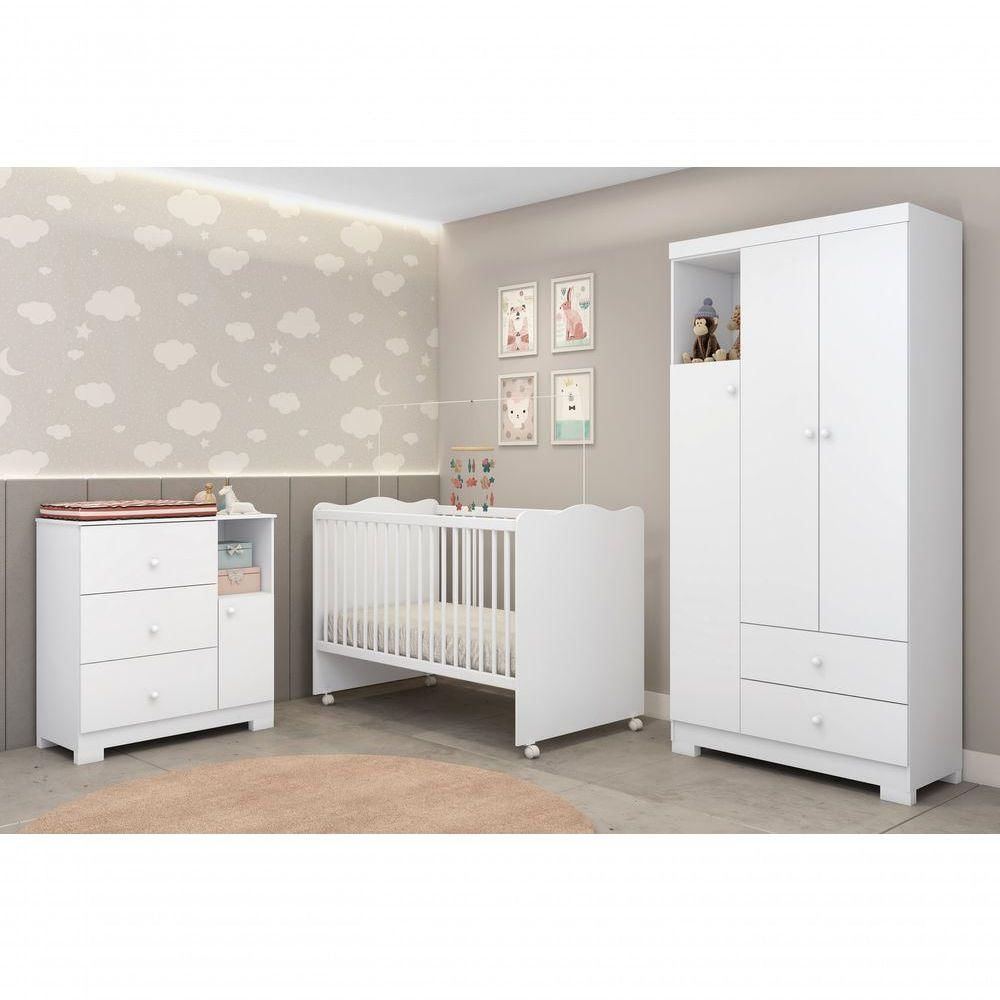 Jogo Quarto Infantil Completo Flok 100% MDF Roupeiro Cômoda Berço Mini Cama Lolly Móveis Estrela