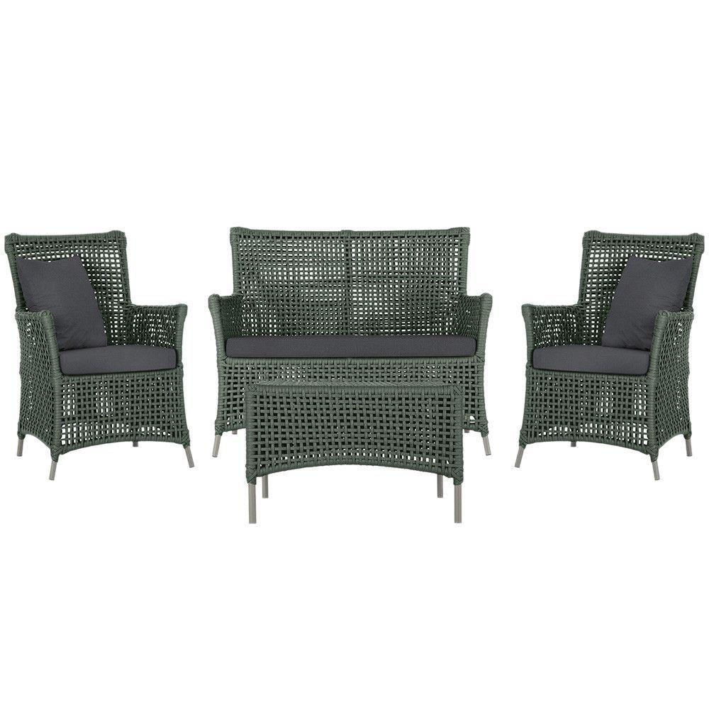 Jogo Sofá 2 Poltronas E Mesa Igapó Fendi E11 Trama Original Verde