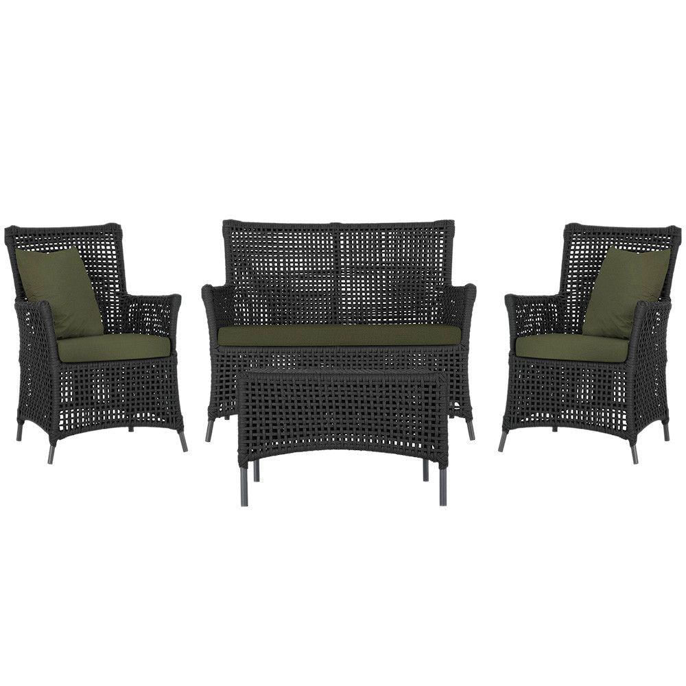 Jogo Sofá 2 Poltronas E Mesa Igapó Preta E13 Trama Original Preto