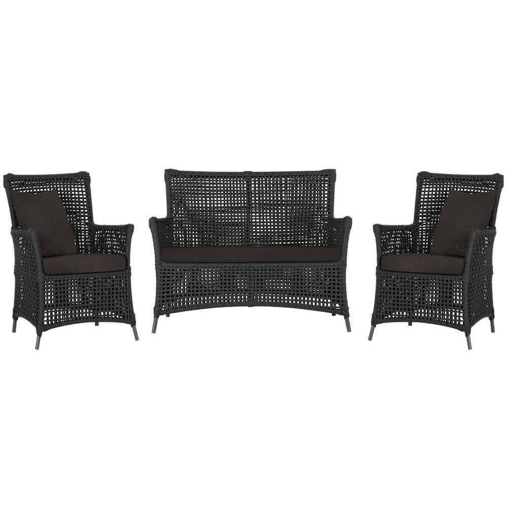 Jogo Sofá E 2 Poltronas Igapó Alumínio Preta E9 Trama Preto