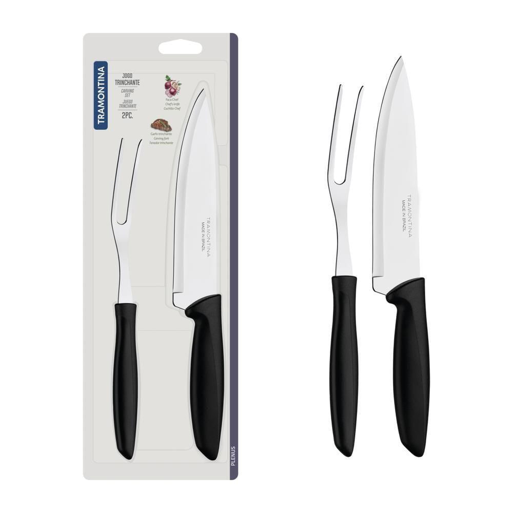 Jogo Trinchante Tramontina Plenus Com Lâmina Em Aço Inox E Cabo De Polipropileno Preto 2 Peças
